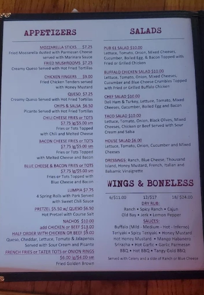 Since opening its doors in 2013, The Pub on 61 has carved out its reputation as Charleston's quintessential neighborhood bar and grill—a place where strangers become regulars and regulars become family. What began as an unassuming establishment has blossomed into a beloved local gathering spot that consistently exceeds expectations, proving that the best experiences often hide behind the most modest facades. The Pub specializes in outstanding burgers and wings that have earned devoted followings among locals and visitors alike. The wings, particularly the hot honey mustard variety, have garnered rave reviews for their perfectly balanced flavors and melt-in-your-mouth quality. The burgers stand as some of Charleston's finest—substantial, flavorful creations that reflect the kitchen's commitment to excellence. Complementing these signature items are crispy fries and fully loaded nachos that patrons describe as exceptional, alongside a diverse menu designed to satisfy every craving. Beyond the food, The Pub on 61 thrives as an entertainment destination. Pool tables, dartboards, and cornhole setups provide endless opportunities for friendly competition throughout the week. Live music electrifies the atmosphere every Friday and Saturday, with Tuesday nights reserved for team trivia that draws enthusiastic crowds. The venue also hosts Monday cornhole tournaments, creating weekly traditions that keep the community connected.